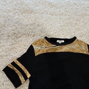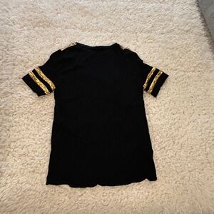 SANDRO BLACK GOLD METALLIC SHORT SLEEVE TOP SHIRT WOMEN SIZE 2