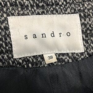 SANDRO BLACK / WHITE TWEED AND LEATHER TRENCH COAT