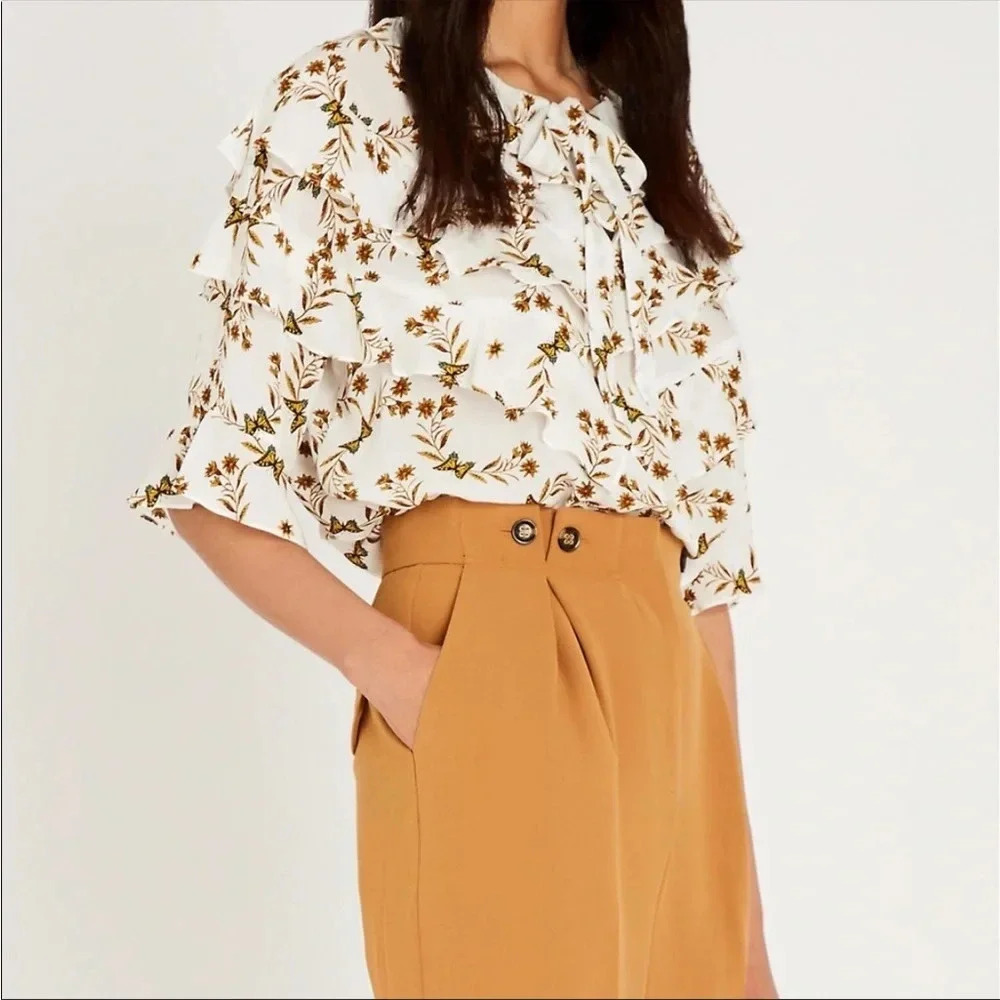 SANDRO BUTTERFLY PRINT RUFFLE BLOUSE