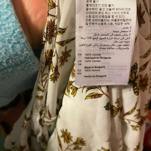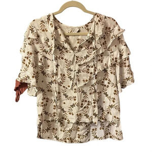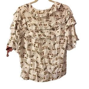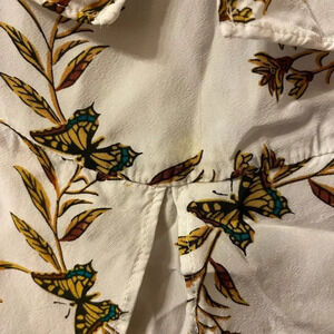 Pre owned like new. Gorgeous white ruffle blouse with butterfly print. Size tag has been removed but this looks like a small. Measurements below: