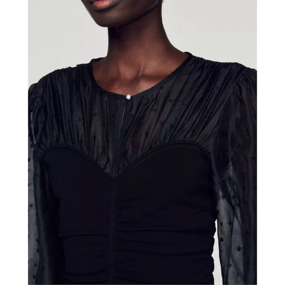 SANDRO Balmora Swiss-Dot Puff-Sleeve black mini Dress NWT