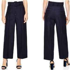 SANDRO Belted Wide-leg Pants in Deep Navy