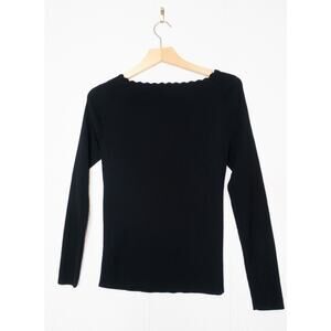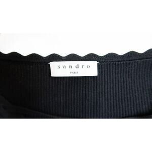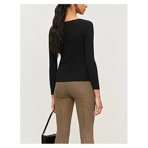 SANDRO Black Ribbed Lace Up Long Sleeve Sweater Top LARGE