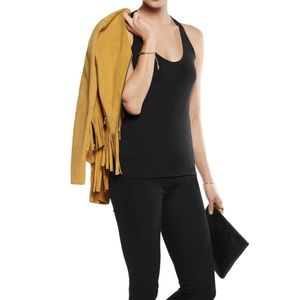 More than just another little black tank, Sandro's take on the summer essential gets cool twisted straps at the back for a fresh and fun look to see you through the season. Scoop neck, sleeveless, open back with twisted racerback straps.