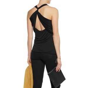 SANDRO Black Tanja Twist Back Silk-trimmed Jersey Tank Top