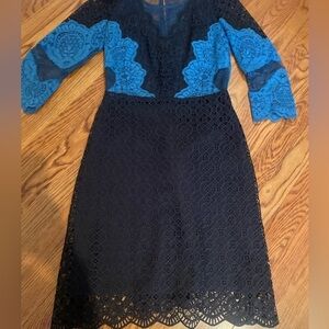 SANDRO Black and Blue Lace Design Dress