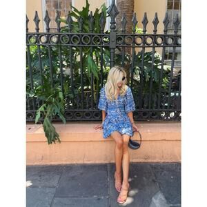 SANDRO Blue Floral Linen Blend A-Line V-Neck Mini Dress in size 36 (US 4) combines timeless elegance with a fresh, breezy feel. Crafted from a lightweight linen blend, this dress features a charming blue floral print that exudes femininity. The flattering V-neckline and A-line silhouette create a figure-enhancing fit, while the mini length adds a playful touch. Perfect for daytime outings, garden parties, or vacation wear, this dress effortlessly balances comfort and sophistication. Pair it with strappy sandals or heels for a polished, warm-weather look.