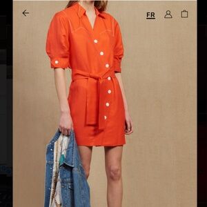SANDRO EUC Asymmetric Button Mini Dress w/Waist Tie in Red Size FR 34/US 2