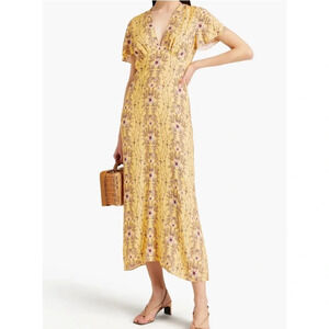SANDRO Esther Cutout Floral Jaquard Midi Dress in Yellow Cottagecore Prarie 34
