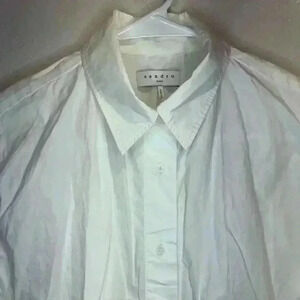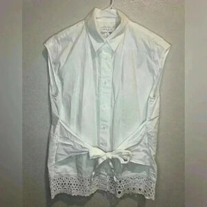 SANDRO Eyelet Trim Tie Front 100% Cotton White Blouse In Ecru. Size /. Excellent pre-owned condition.