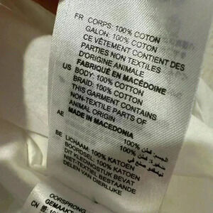 • Front button closures, self-tie front