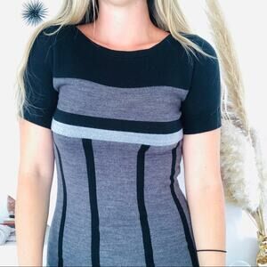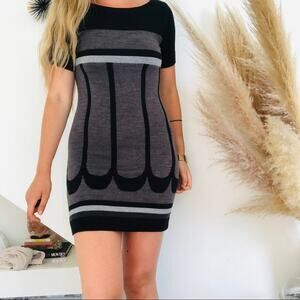 SANDRO FERRONE Black Gray Printed Sweater Short Sleeve Bodycon Mini Dress XS
