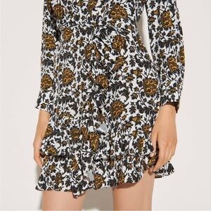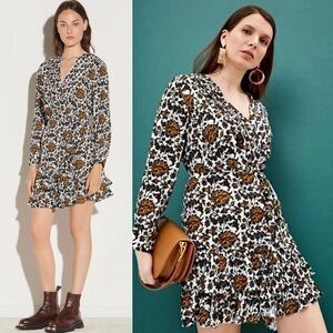 SANDRO Floral Print Long Sleeve V-Neck Faux Wrap Tiered Ruffle Mini Dress 6