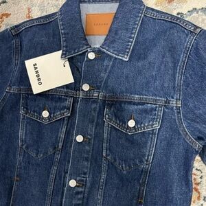 SANDRO French Luxury Brand from Paris Blue Denim Jacket with Tie Die Back.