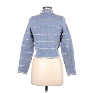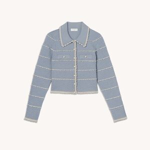 SANDRO Infinity Blue Scalloped Textured Contrast-Trim Cropped Coatigan - 4 (XL)