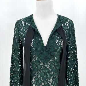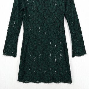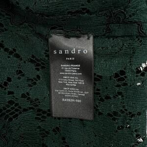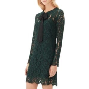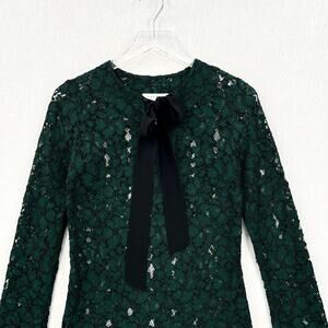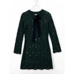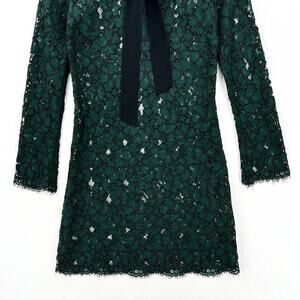 SANDRO Lace Dress Womens Small Green Long Sleeve Tie Neck Mini Sheath