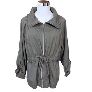 SANDRO Lightweight Jacket XL Khaki Green Zip Tie Waist Roll Tab Casual Outdoors
