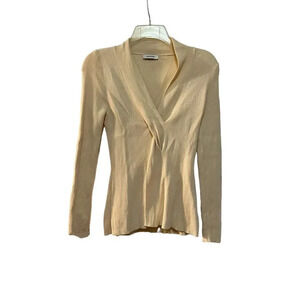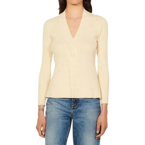 Put a new twist on sweater season in this V-neck knit with fine-gauge rib stitching and a crossover braid effect at the front.