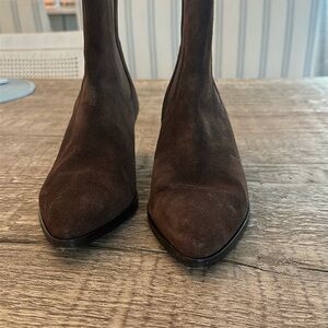 These boots are in great condition - a tiny miss in suede on right inside part of shoe. See picture