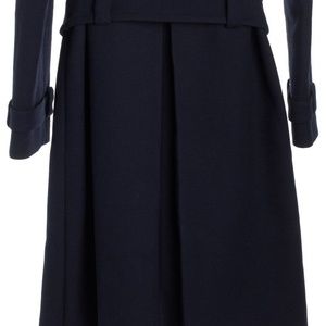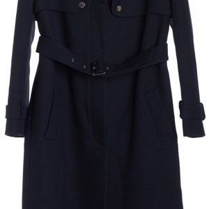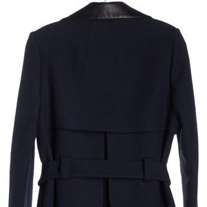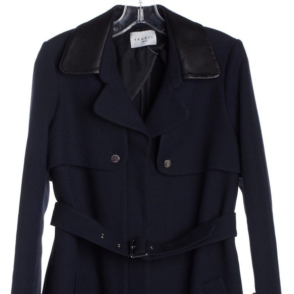 SANDRO Navy Blue Black Leather Trim Slim Coat, 8