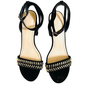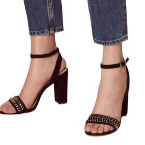 SANDRO PARIS Black Suede Sandals Gina Block Heels Studded Size 39 US 8.5