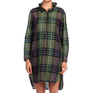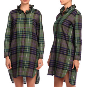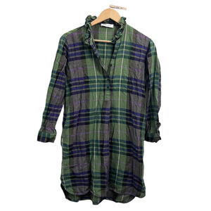 SANDRO PARIS GREEN PLAID LONG SLEEVE RUFFLE NECK HI-LOW SHIRT DRESS Size M