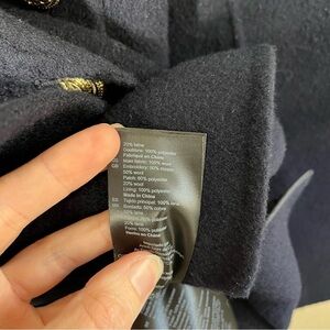 SANDRO PARIS Navie Double-Faced Chest Patch Wool Blazer. It’s timeless, cozy, and nautical-inspired! This Sandro Navie Double-Faced Chest Patch Wool Blazer is a winter wardrobe classic featuring a double-breasted front, welt pockets, and an embroidered chest patch. Crafted from pure wool, it makes for a sleek cold-weather layer. It has a vintage feel but a rather modern tailored silhouette. 100% wool. Size 36 = US 4 according to size chart.