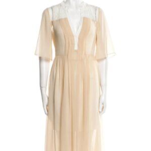 SANDRO Paris Beige and White Silk Popover Short Sleeve Midi Dress Size M
