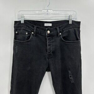SANDRO Paris Black Dark Wash Button Fly Distressed High Rise Skinny Jeans 30