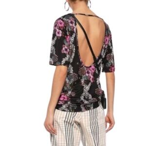 SANDRO Paris Cut Out Floral Jersey Blouse Size L
