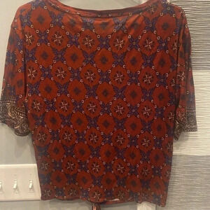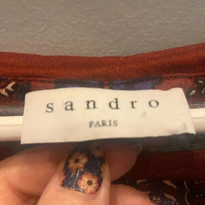 SANDRO Paris Lamaar Bordeaux Top Print Tie Knot Waist Medium