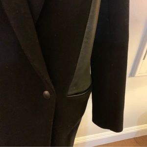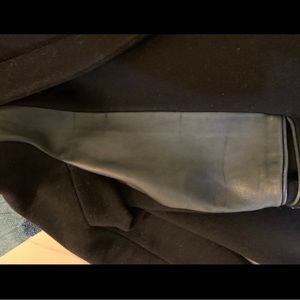 Black coat overall and the leather on front coat is a dark gray/light black color)