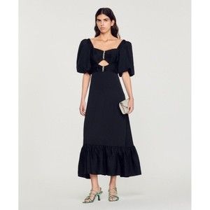 Elevate your wardrobe with this Sandro Paris Rhinestone Embellished Long Black Dress – the embodiment of relaxed elegance and timeless style. Step into the world of comfort and sophistication with Sandro, where every piece is a testament to refined taste and effortless chic.