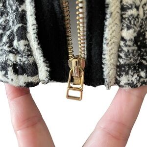 SANDRO Black & White Wool Zip Up Jacket Size 40 in Excellent condition, no stains or rips that I see. Front zipper closure with usable decorative zippers on the sleeves, with a snap button closure. Decorative front slash pockets. Perfect to go from day to night. A staple you’ll constantly be reaching for!