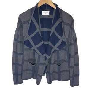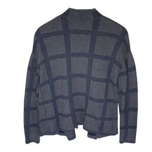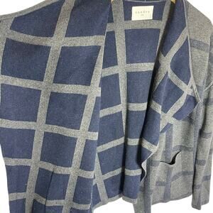 Women’s Gray and Blue Plaid Open Front Cardigan