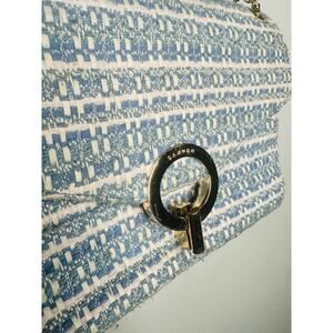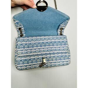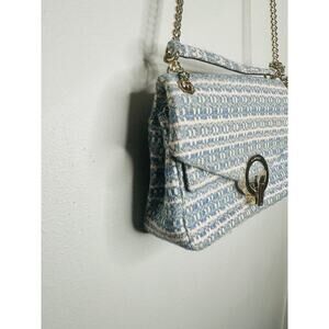 SANDRO Paris Yza Blue White Tweed Gold Chain Crossbody Handle Shoulder Bag