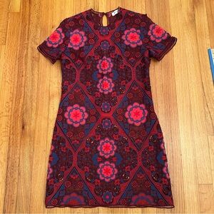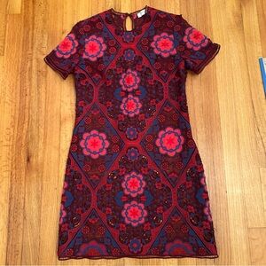 SANDRO RED LACE DRESS size FR 3 # see size chart under photos and approx measurements