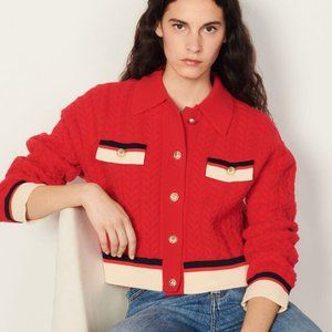 SANDRO Red Cropped Cardigan Size 0 (XS)