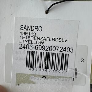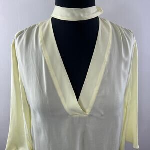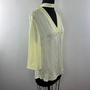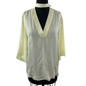 SANDRO Renza Bow Light Yellow V-Neckline 3/4 Sleeve Blouse Top Size 2 NEW