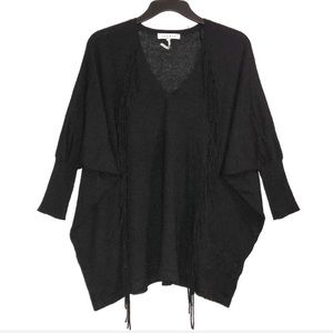 SANDRO S/M Alpaca Fringe Batwing Slouchy Black Sweater Knit EUC Sz 1 S/M