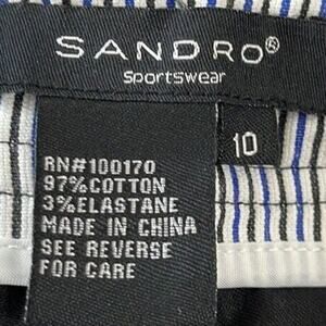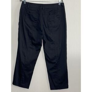 SANDRO SPORTSWEAR BLACK CROPPED PANTS SIZE 10. zip fly button closure, belt loops , two front pockets with zipper closure, two back pockets . rise 11", waist 16.5", inseam 23.5" . Gently used no flaws