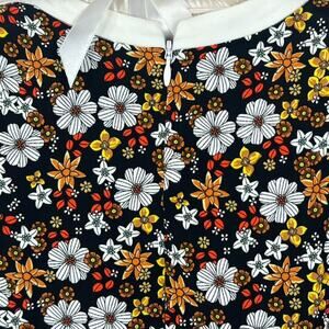 SANDRO Shift Dress Women's Size 1 Midnight Floral White Trim Retro