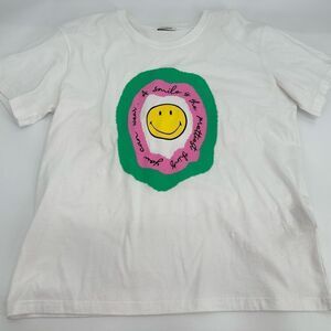 SANDRO Smiley-face Print T-shirt In White Size Medium.