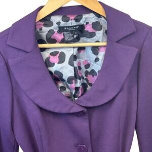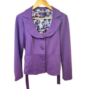 SANDRO Paris Sportswear Purple Collared Blazer Jacket Peplum Belted Contrasting Print Lining Button Front MSRP: $565