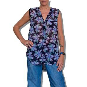 Palm Tree Print Sleeveless High Low Extravagant Tunic sz 1 Women's
