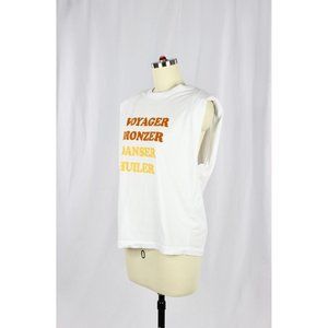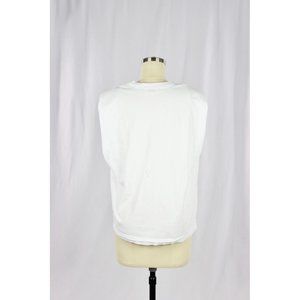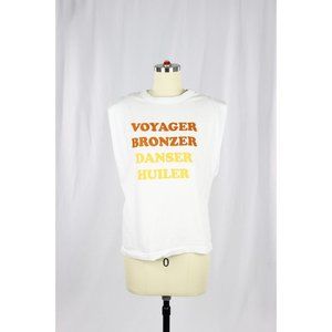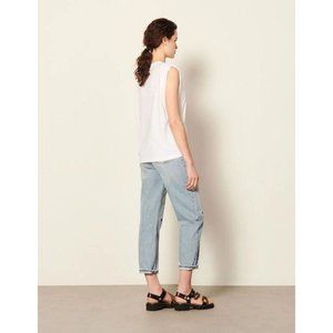 SANDRO Trivoli White Jersey Flocked Cotton Shoulder Pad Muscle Tank, Size 2/M