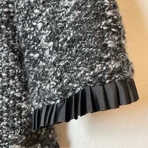 SANDRO Tweed Blazer Jacket Ribbon Ruffle Trim Small Petite Black White Womens
