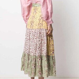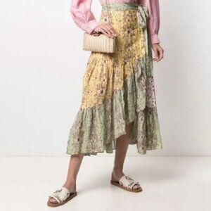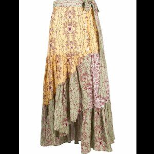 SANDRO VIOLAINE WRAP EFFECT CREPE MIDI SKIRT ASYMMETRIC FLORAL PRINT SIZE 2 MEDIUM NWT