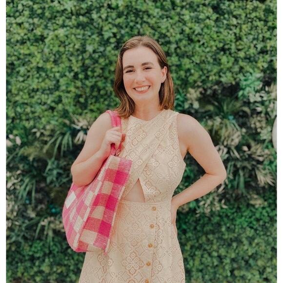 SANDRO Women's Beige Pink Rose Gingham Checkered Tote Bag