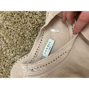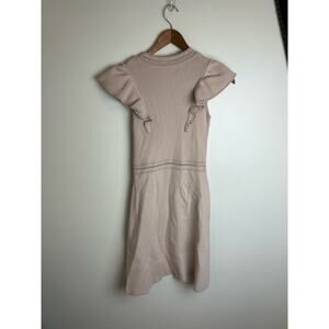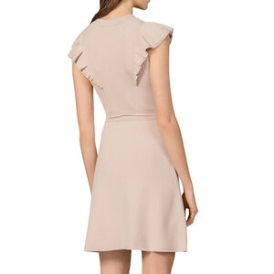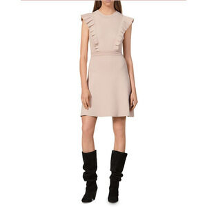 SANDRO Women's Beige Ruffle-Trimmed Tilla Ribbed Knit Mini Dress Sz 36